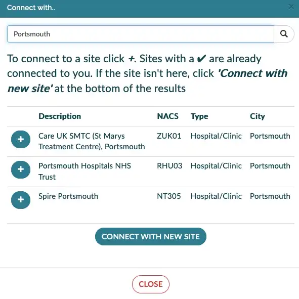 - Note: Patient connections can only be found by email address