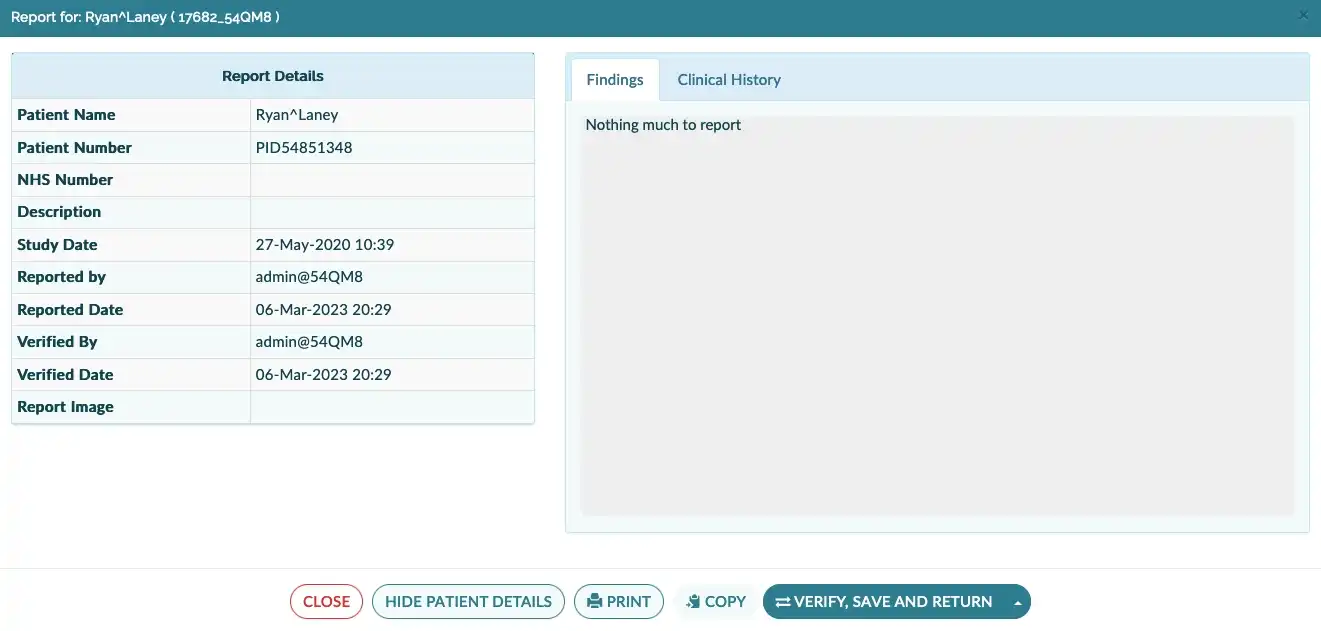 - If you wish to save the report but it's not ready to be returned use the right-hand arrow and select Save unverified